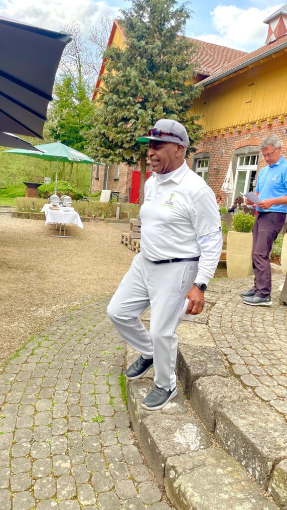 In seiner Bruttorede bedankte er sich beim Club als Ausrichter des Turniers und den Greenkeepern, die den Platz trotz schwieriger Wetterbedingungen im Vorfeld schon in einen hervorragenden Zustand gebracht haben.