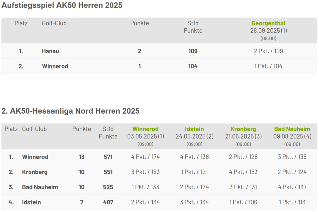(js/rs) Drama im Taunus: Der GC Winnerod hat das Aufstiegsspiel zur 1. Hessenliga der AK 50 gegen den GC Hanau-Wilhelmsbad knapp verloren. Auf dem spektakulären Platz des Hofgut Georgenthal fehlten am Ende nur fünf Bruttopunkte zum großen Ziel. Trotz der bitteren Niederlage blickt Winnerod auf eine starke Saison zurück – und richtet den Fokus nun auf 2026.